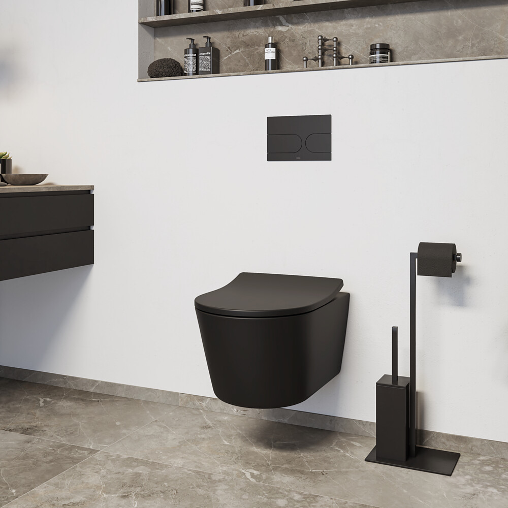 TOTO vereint in seinem WC RP in Schwarz matt höchste Hygienestandards durch die effiziente TORNADO FLUSH Spülung mit einem formvollendeten Design und einem subtilen Spiel von Farbe und Materialität.