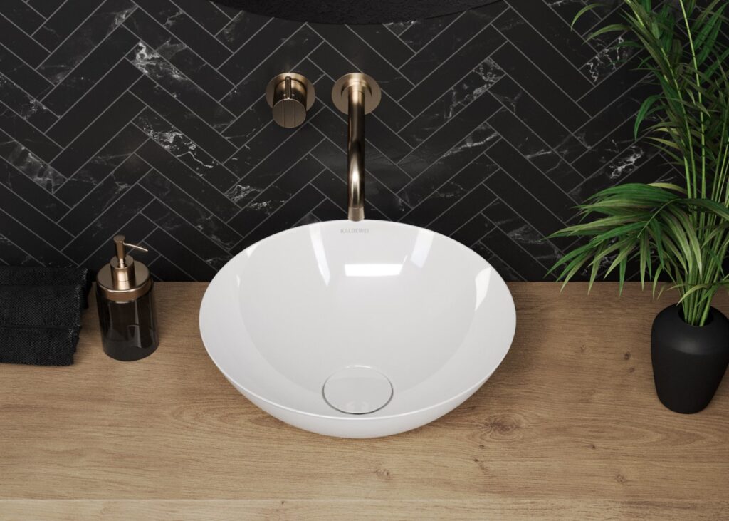Die Waschschale Avellino passt perfekt in private Bäder oder exklusive Hotelbäder, die auf Plastik verzichten und ihren ökologischen Fußabdruck minimieren möchten. (Fotos: Kaldewei)