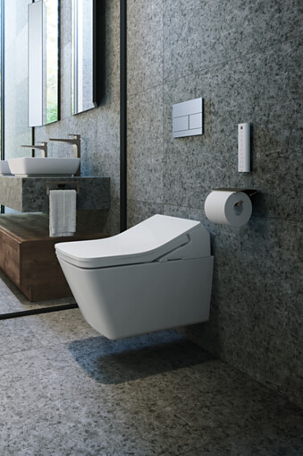 TOTO kann für sich in Anspruch nehmen, diese Entwicklung initiiert zu haben. Bis heute ist seine im Lauf von Jahrzehnten entwickelte Expertise bei den Hygiene- und Komforttechnologien oft nachgeahmt worden. Zudem verfügt das bereits im Jahr 1917 gegründete Unternehmen über eine herausragende Erfahrung in der Herstellung von Keramik. Dazu zählen die innovative, randlose Keramik für das WC und das eigens dafür entwickelte Spülsystem Tornado Flush. Als weitere Besonderheit ist hervorzuheben, dass TOTO die Stabdüse standardmäßig oberhalb der Keramik positioniert: An dieser Stelle ist sie vor Verschmutzungen geschützt, zudem befindet sie sich sauber hinter einer Abdeckklappe. Diese Platzierung gewährleistet auch, dass die Düse nicht mit dem Spülwasser und Fäkalien in Berührung kommt und die gesamte Technik vollständig sauber bleibt, sollte das WC einmal verstopft sein. Ewater+ ist ebenfalls eine einzigartige, von TOTO entwickelte Reinigungstechnik. Sie basiert auf elektrolytisch aufbereitetem Wasser mit antibakterieller Wirkung. Ewater+ wird eingesetzt, um das WC-Becken sowie die Stabdüse zur Reinigung mit Bakterien reduzierendem Wasser zu besprühen und so länger sauber zu halten.